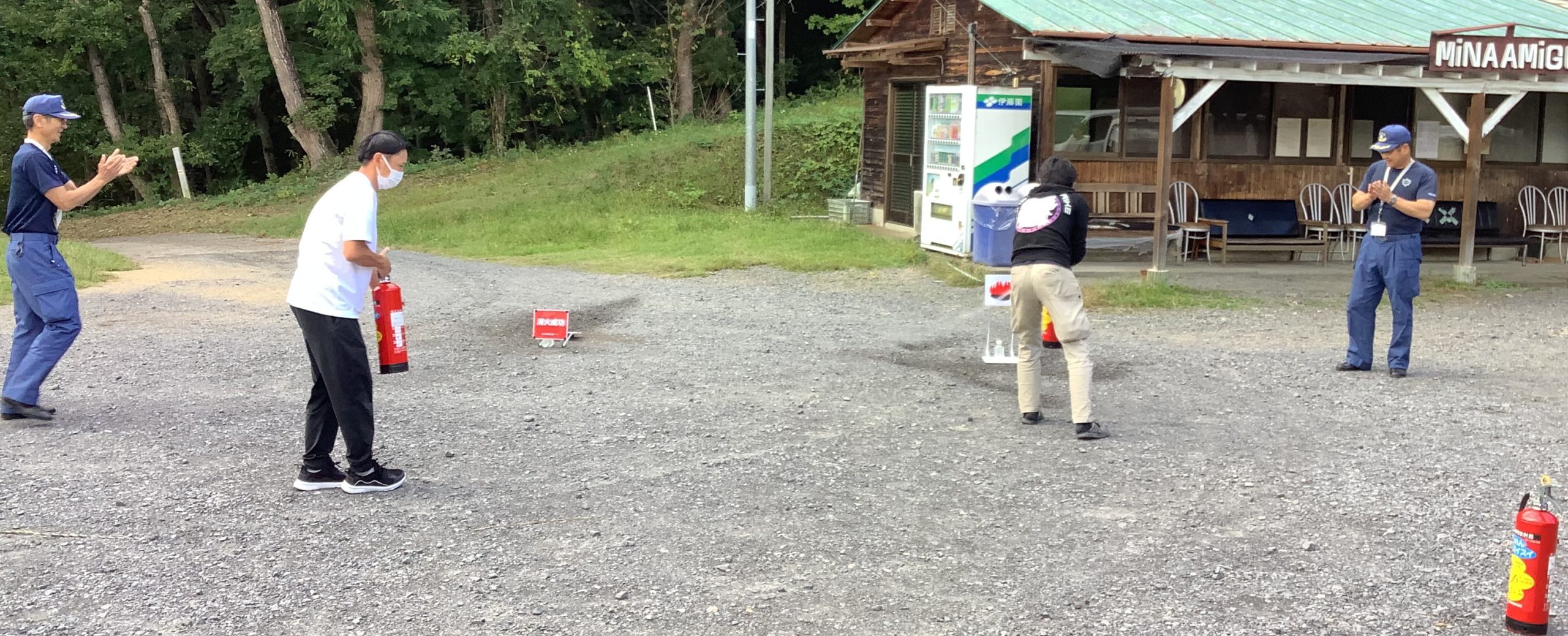 アミーゴ荘 2025.12.04 防火訓練、講座を行いました。 アミーゴ荘では、春と秋に2回、防災訓練を行っております。例年どおり大子町消防本部より、消防職員さんをお招きして行いました。秋は乾燥してくるため、火災の季節となりますので、火災を想定した訓練を行いました。 利用者さんたちの中には、煙草を吸われる方がたくさんおられます。普段何気なく煙草を吸っておられるのですが、あらためて煙草の火の始末の重要性について、勉強させていただきました。 写真は、消火訓練と職員による通報訓練の様子です。