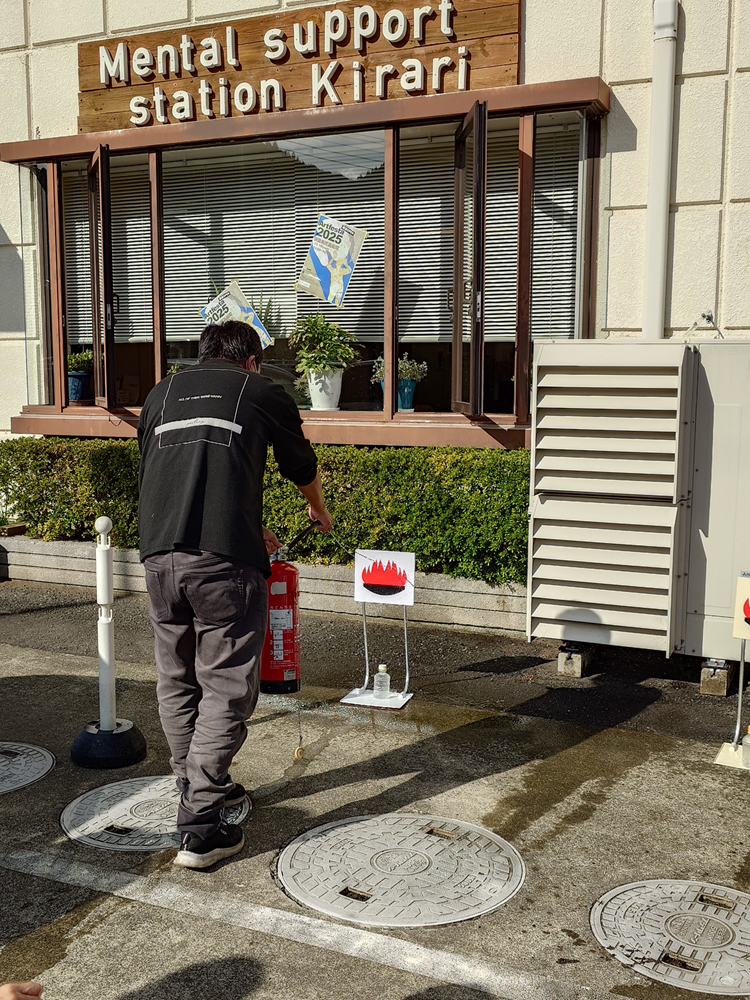 きらり 2025.10.29 避難訓練 出火場所を1階給湯室と想定して避難訓練を実施しました。 今回は通報訓練・水消火器による消火訓練も体験。 いざという時に落ち着いて行動が出来るように日頃からの訓練は大事ですね。
