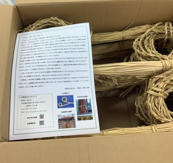 MINA AMIGO 2026.03.27 アミーゴの注連縄を全国の神社様にお届けします。 「全国の神社にアミーゴの注連縄を送ろうプロジェクト(仮称)」が始動いたしました。初回は、神奈川県の相模原市に鎮座する「日々神社」様にお送りいたしました。 職員のご家族のご縁により、日々神社様に送らせていただくことになりました。 このプロジェクトは、アミーゴの注連縄を広く知って頂こうという思いと、伝統的な技法での作り手不足でお困りの神社様や地域のお祭りを少しでも支えていけないかという思いから始めております。 全国の神社のみなさまや、地域のお祭りに関わる皆様の一助となりましたら幸いです。